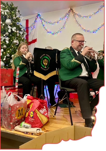 Pilling Jubilee Silver Band set a joyful tone to the proceedings. Their gleaming instruments added extra glitz to the stage bedecked with sparkling fairy lights and a twinkling tree.