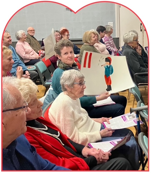 Hot food, courtesy of Brenda, was served to each table and tucked into enthusiastically. Delectable desserts followed, which all declared, ‘delicious’. Teas and coffees completed the meal and the happy, relaxed chatter continued, before getting down to some not-so-serious quiz questions!