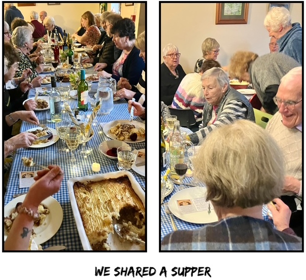 The altar table was set in the front of church for Holy Communion and the tables were laid out in the meeting room for a simple, symbolic meal. Both featured the staples of bread and wine. Both were for invitations to share. Both were sustaining and life-giving.