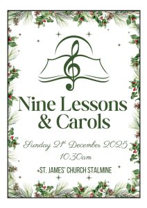 Christmas service of music with readings. Will be followed by seasonal refreshments.
