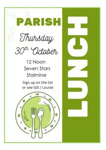 Please sign the notice in the church porch if you wish to attend. See Gill (07952 354684) or Louise with any questions / to choose your food.