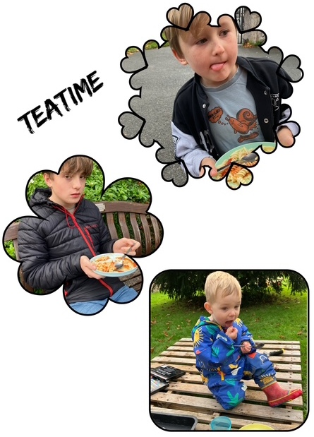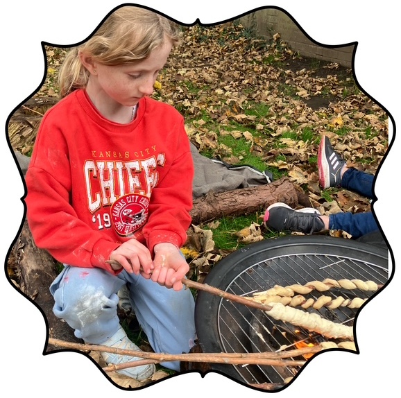 All too soon, it was time for pause for tea. Cheesy pasta and cake was shared and enjoyed, before the group came back together in the log circle, where Rev. Naomi reiterated all the good gifts (treats) God showers us with, without any tricks!