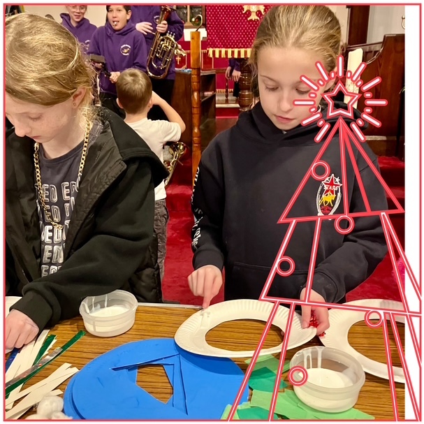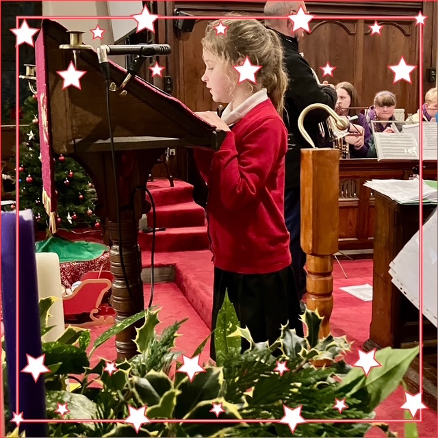 Everywhere, there were references to light…from the flickering candles adorning window-ledges, embedded in lush, seasonal foliage, to the glinting instruments of Wyre Brass Band, to the sparkle of Christmas jumpers and glitzy accessories, light was bounced around the church. There was a lightness of mood, as families met up with friends and neighbours, ready for a community celebration. Tantalising light.