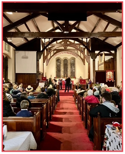 Defying the rain, villagers made their way through the darkness towards St. James’ church, some aided by home-made lanterns, others carrying torches, but all had hope in their hearts…the hope of Christmas.