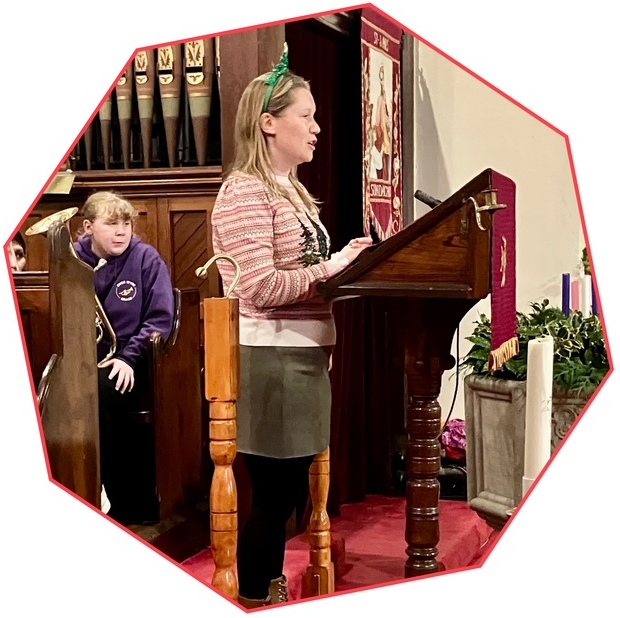 Sara led the short service, welcoming everyone to the worship space where all had gathered to share in the much-anticipated festival of light, where the Christmas tree lights would shine brightly for the village to enjoy.