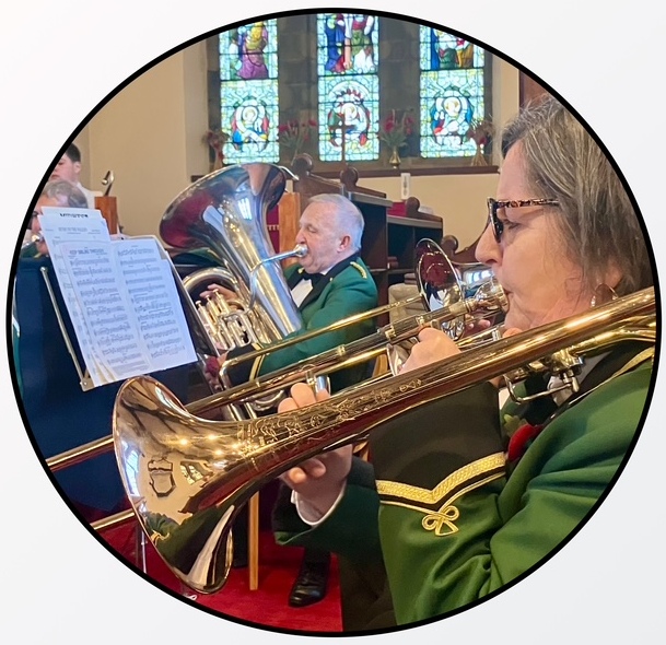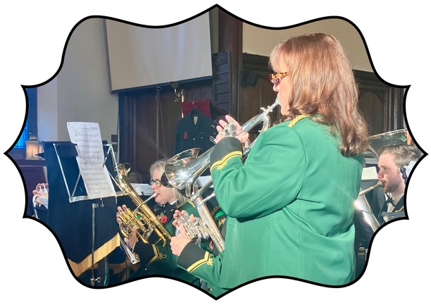 The programme moved on to ‘Music from the [war] Era’. The much-loved favourite, ‘A Nightingale Sang in Berkley Square’ enabled Principal Cornet of 36 years Andy to showcase his skills replicating the sounds of the songbird.