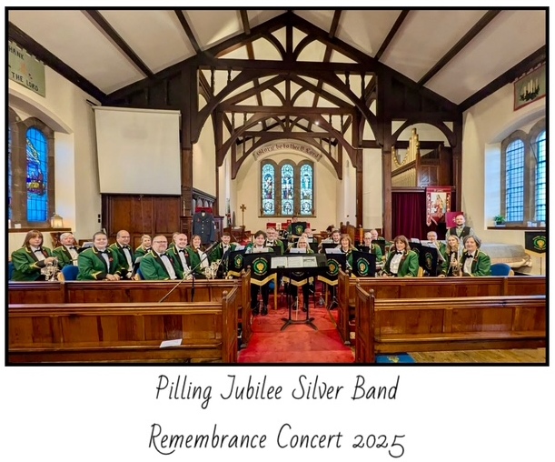Pilling Jubilee Silver Band were on fire this afternoon, performing their Remembrance Concert to a full church. Their opening number was ‘Doyen’, by composer Goff Richards, commissioned for the launch of the Leyland National coach in 1982 and originally performed by the Leyland Band. This band staple set the tone for the rest of the programme.