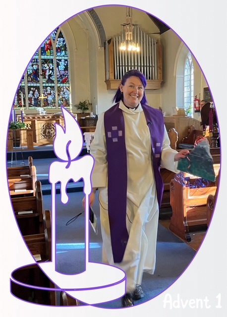 Rev, Naomi led the United Benefice Advent Communion service at Blessed Virgin Mary church, Hambleton, resplendent in purple vestments and rocking a complementary new and seasonal hair colour!